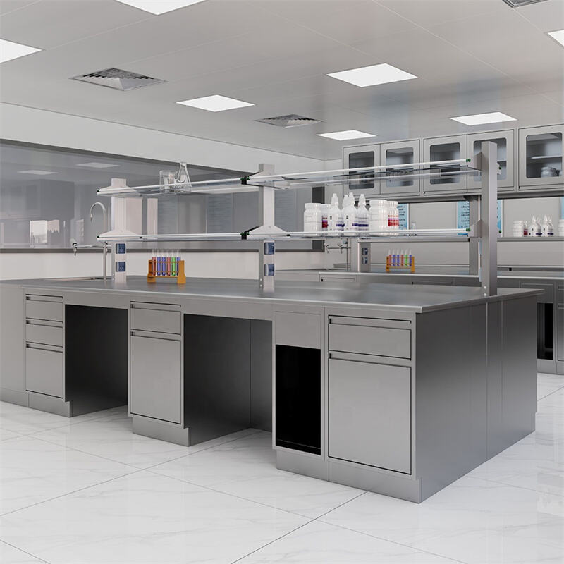 Laboratory workstations can be categorized based on their placement (central, side, or corner) or the materials used (all-steel, PP, steel-wood, or stainless steel).